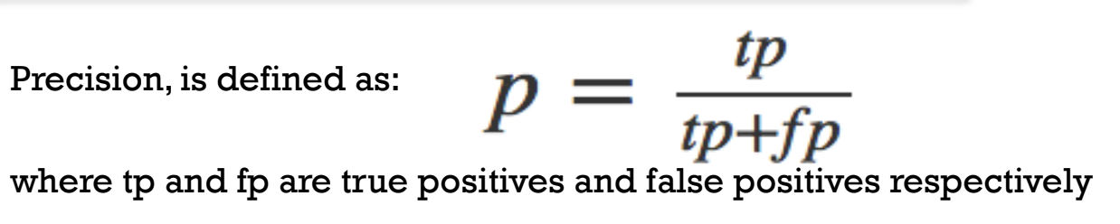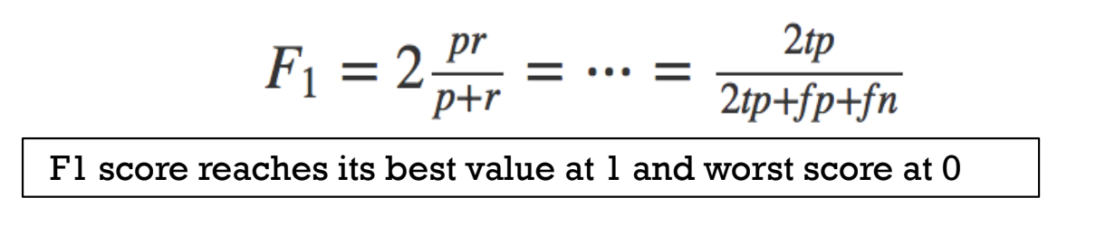 F1 Score : 2 x (precision x recall)/(precision+recall)